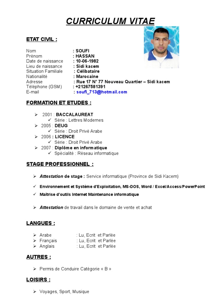 It also shapes a prospective employers first impressions of you as a candidate. All the papers are written Curriculum Vitae Exemple Maroc from scratch. 06 77 75 22 07 Email.