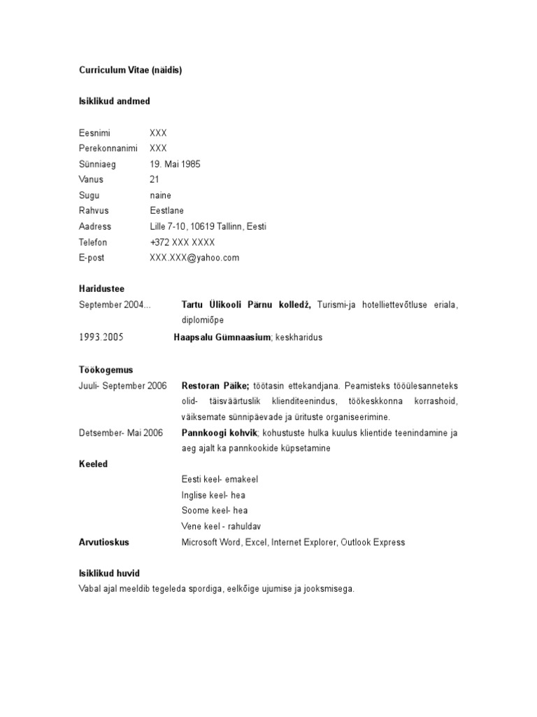 Cv Näidis Doc