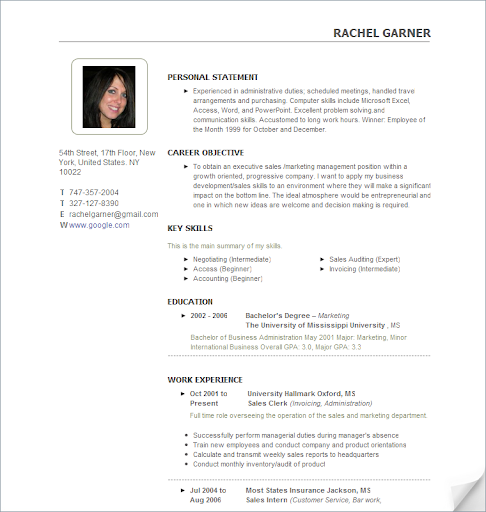 Pic Personal Statement Career Objective Key Skills Education Work Experience Sample Resume Templates Personal Resume Best Resume Template